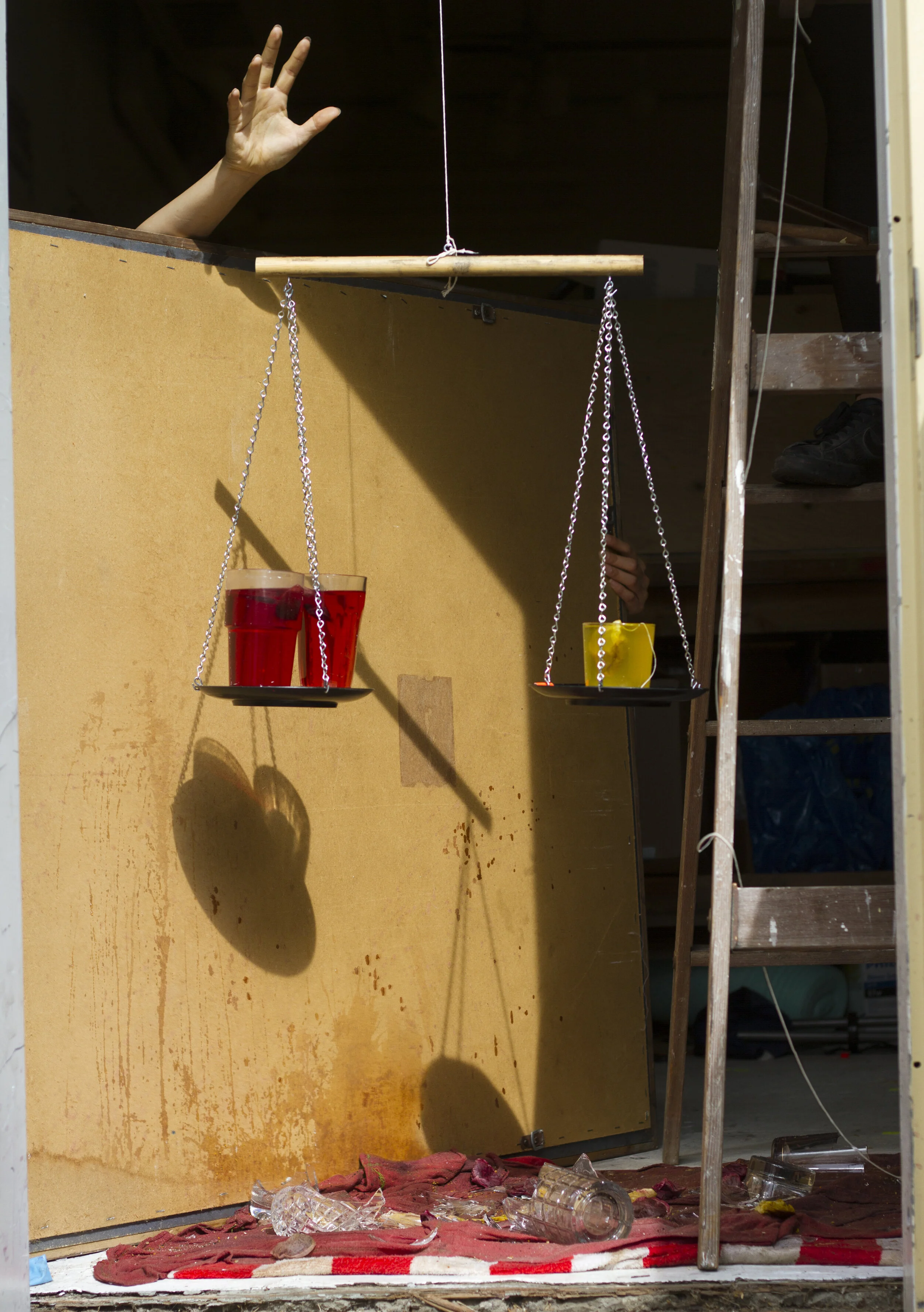 In the two photographs titled “Asymptote,” the artists stage and capture a fleeting moment of equilibrium between two unequal vessels. The subjects stand in for the volatile interactions between the external and the internal perceptions of one’s self.