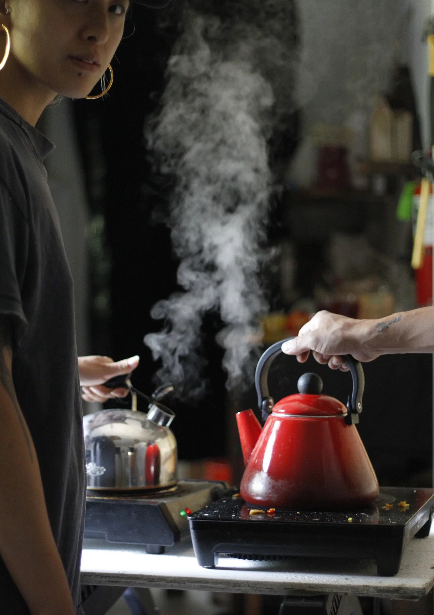 The performance “No, Not Always. No, Not Never.” draws on the artists’ personal backgrounds to examine the impact of internalized white supremacy on intimacy. The artists hold plexiglass between a misaligned kiss to confront the internalized preference for dating white people.